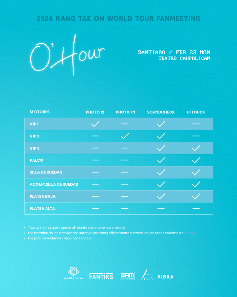 Los beneficios del Kang Tae-oh fanmeeting Chile incluyen hi-touch, fotos y soundcheck.